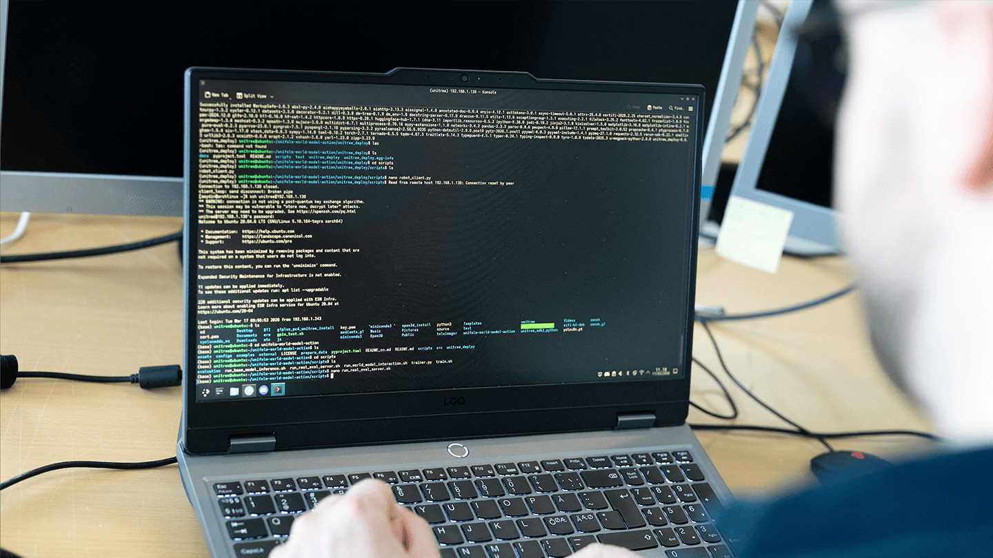- Lige nu prøver jeg at lære en robot at folde et håndklæde. Det lyder komisk, men det kræver massiv AI‑kraft og virkelig avancerede modeller.