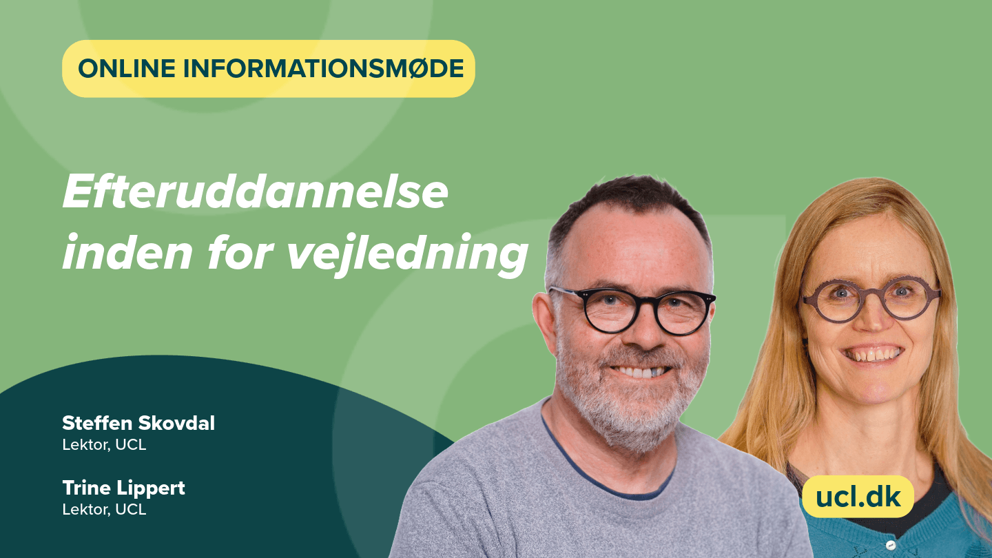 Deltag i vores online informationsmøde og få et overblik over de efterudadnnelsesmuligheder, der findes inden for vejledning. Vi viser bredden i feltet og giver dig indblik i de mange veje, man kan gå, uanset erfaring og faglig baggrund.